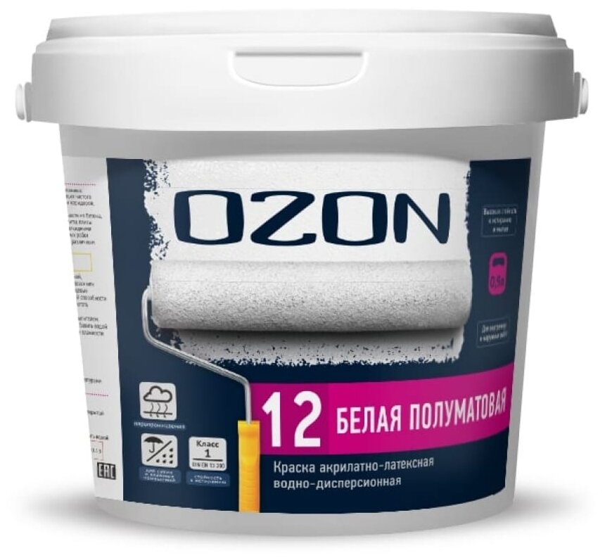 Акрилатно-латексная краска OZON 12 ВД-АК 152А 0.9л/1.2кг ВД-АК-152А-1,2 интересное: