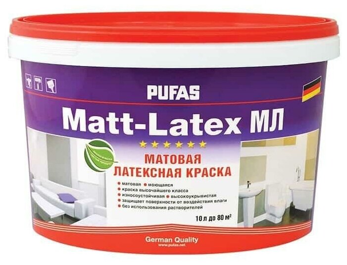Пуфас Матлатекс база A белая краска латексная (10л) / PUFAS Matt-Latex base A краска латексная матовая в сухих и влажных помещениях (10л)