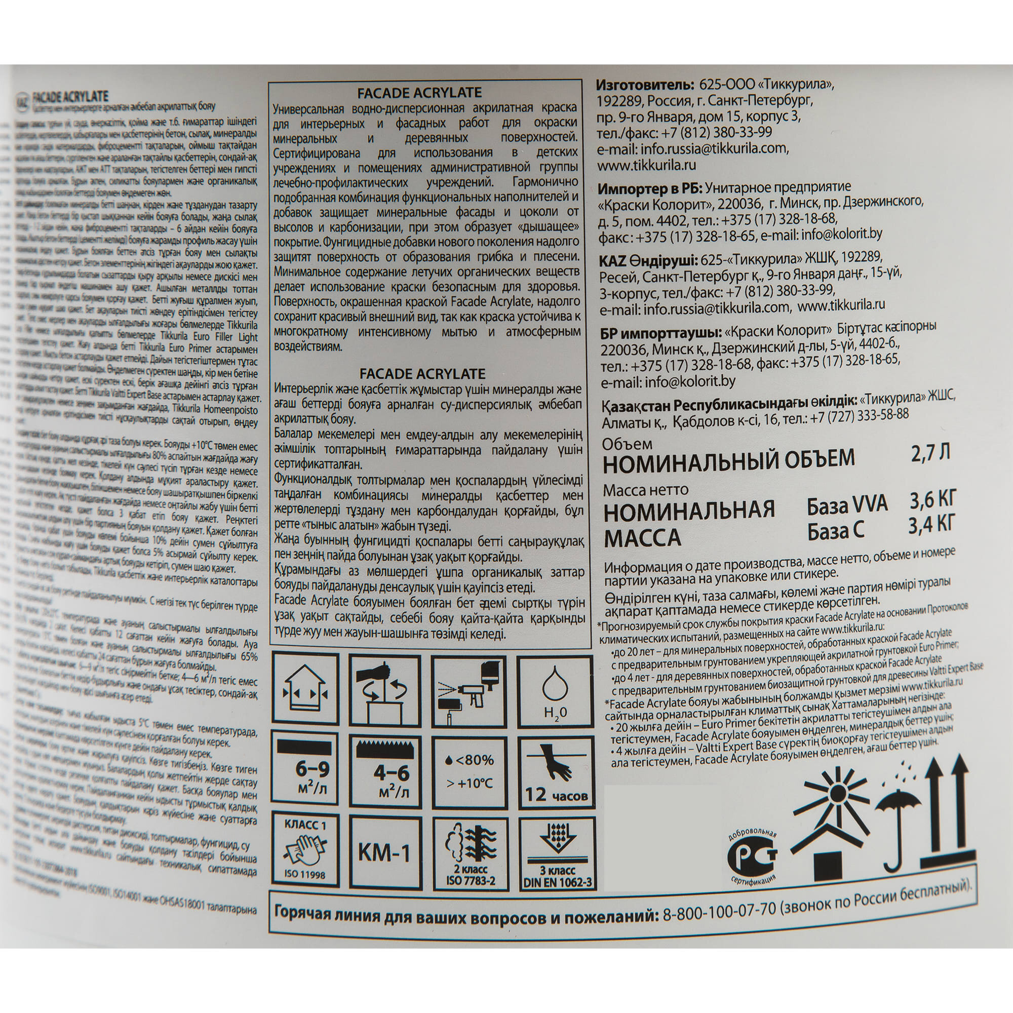 TIKKURILA FACADE ACRYLATE краска акрилатная, универсальная для фасадов и интерьеров, база A (2.7 л)