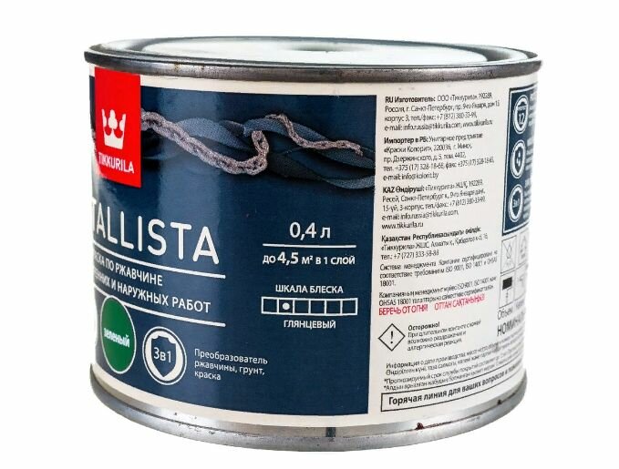 Ниже Вы можете прочитать отзывы на Краска для металла по ржавчине 3в1 Metallista TIKKURILA 0,4 л зелёная, ознакомится с подробными характеристиками, посмотреть интересные обзоры и фотографии на Краска для металла по ржавчине 3в1 Metallista TIKKURILA 0,4 л зелёная.