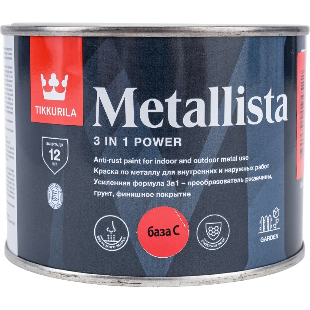 TIKKURILA METALLISTA краска по ржавчине 3 в 1, глянцевая, база C (0,4л)