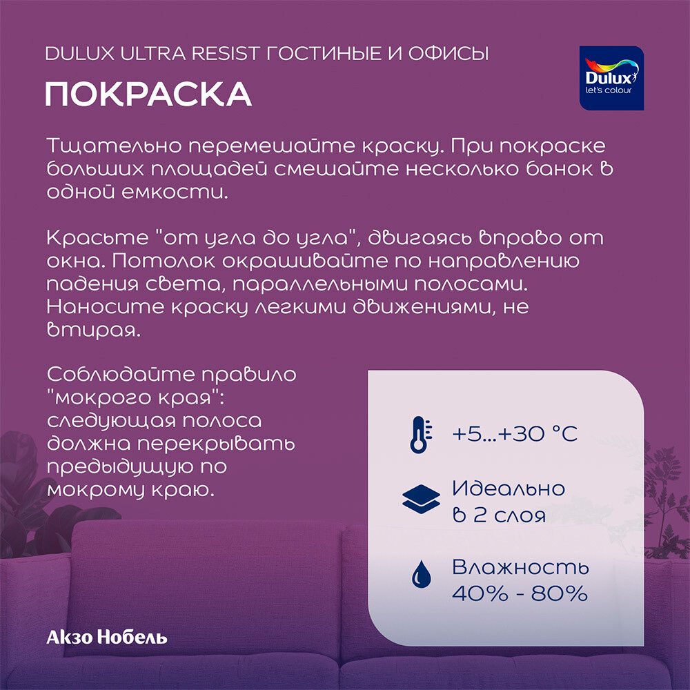 Краска Dulux Ultra Resist BW для гостиных и офисов (усилена воском), 2.5 л