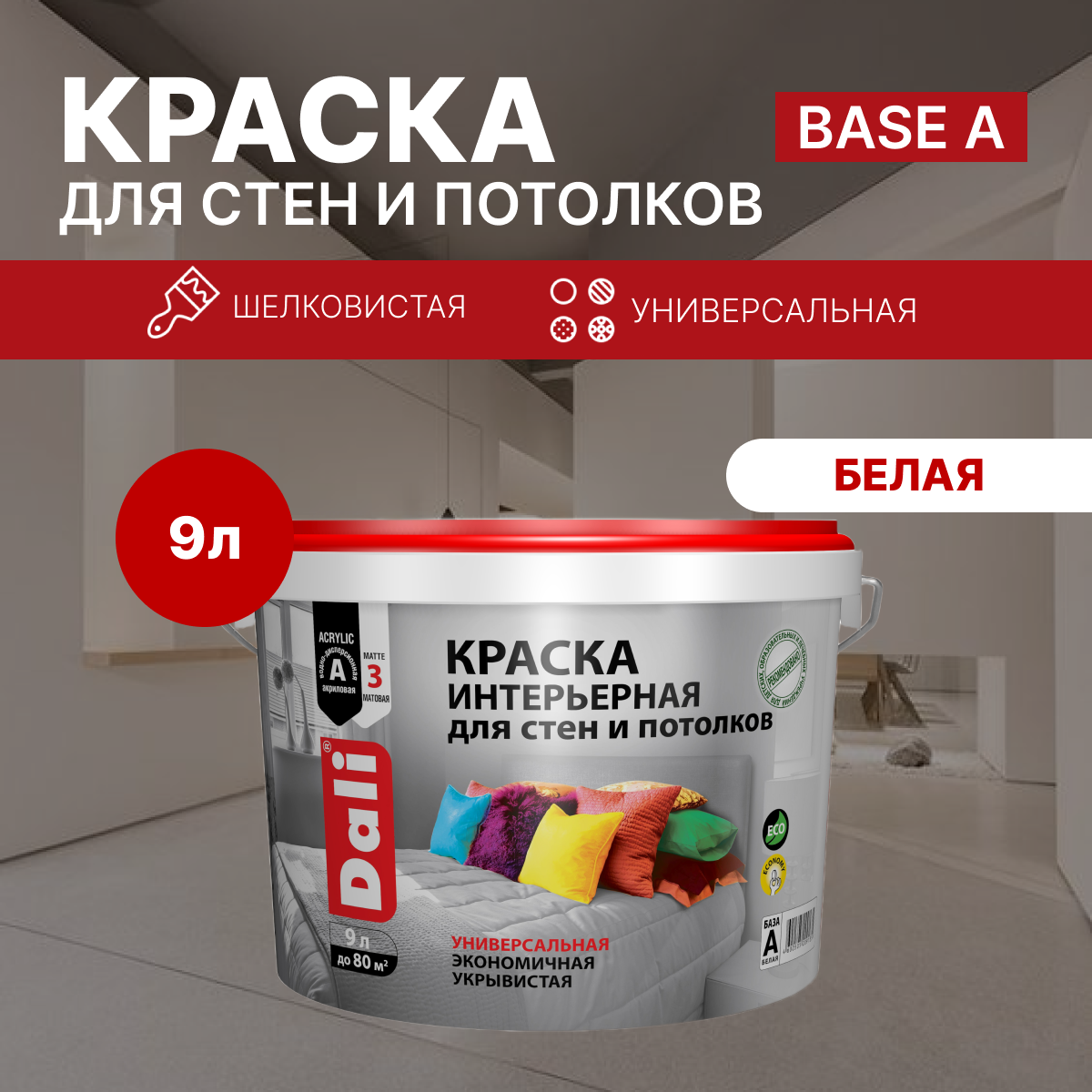 Краска интерьерная Dali, акриловая, глубокоматовая, база A, белая, 9 л