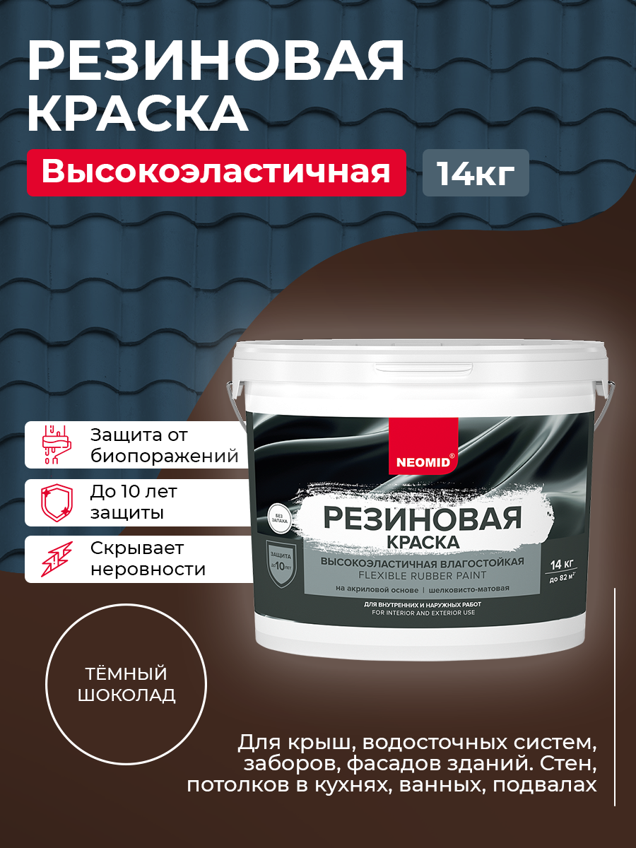 Ниже Вы можете прочитать отзывы на Краска резиновая Neomid матовая (14кг) темный шоколад, ознакомится с подробными характеристиками, посмотреть интересные обзоры и фотографии на Краска резиновая Neomid матовая (14кг) темный шоколад.