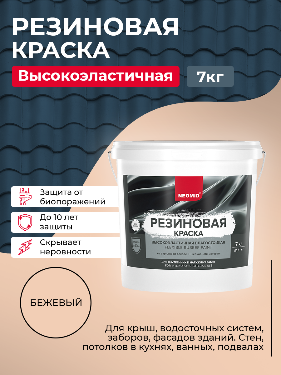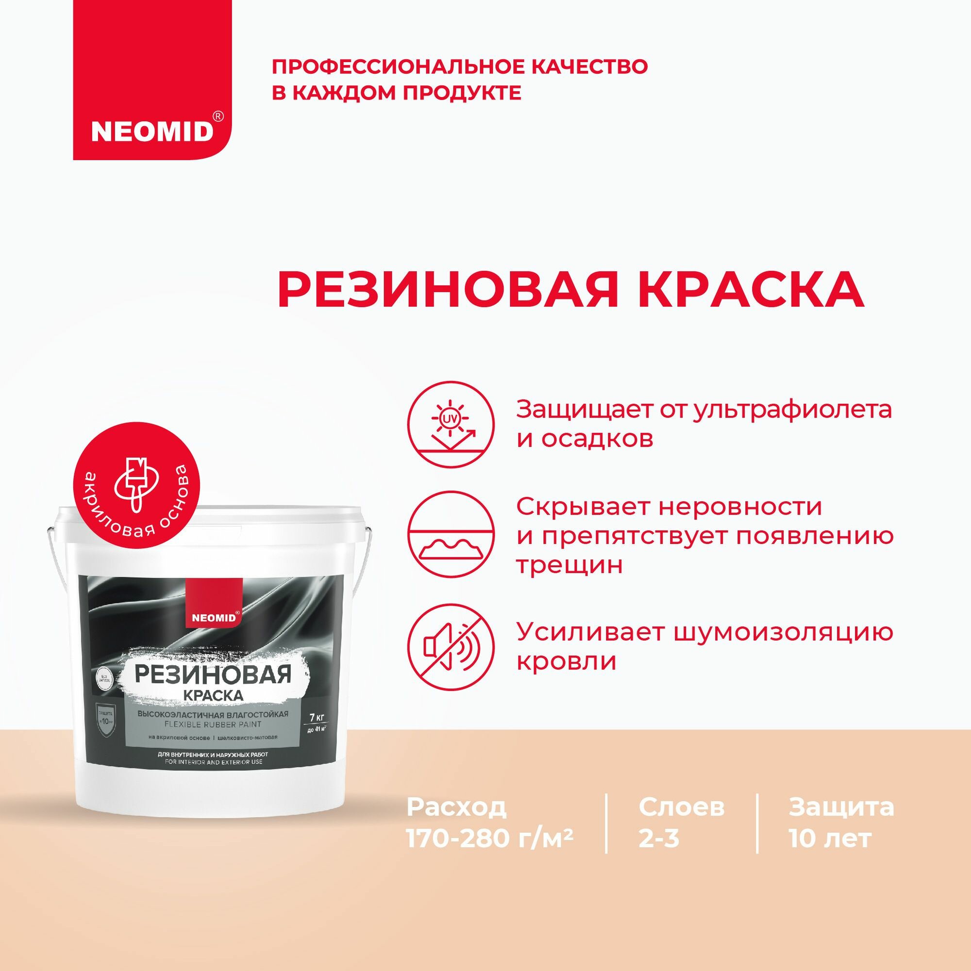 Краска Резиновая Neomid 7кг Бежевый для Кровли, Цоколя, Фасада Суперэластичная, Универсальная / Неомид Резиновая.