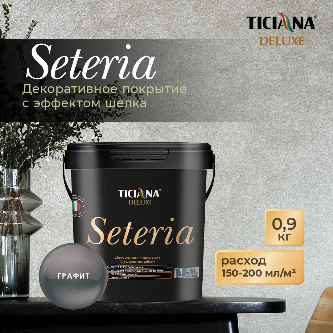 Купить Seteria - декоративное покрытие с эффектом шелка TICIANA DELUXE (Артикул: 4300008173; Цвет: Графит; Фасовка = 0,9 л)