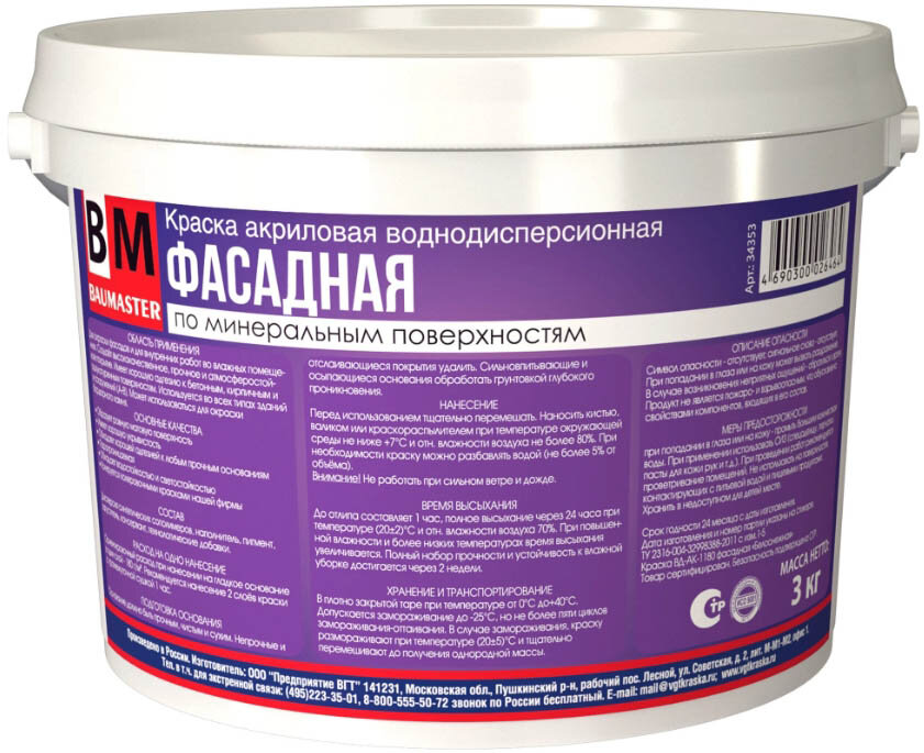 Баумастер краска фасадная белоснежная ВД-АК-1180 (3кг) / BAUMASTER краска фасадная белоснежная ВД-АК-1180 (3кг) интересное: