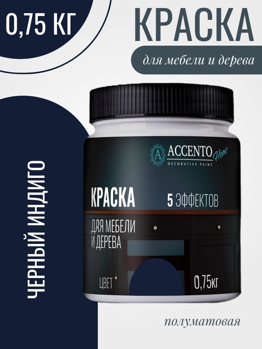 Купить Краска для мебели и дерева акриловая полуматовая, для творчества и декора, цвет Черный индиго, 750г