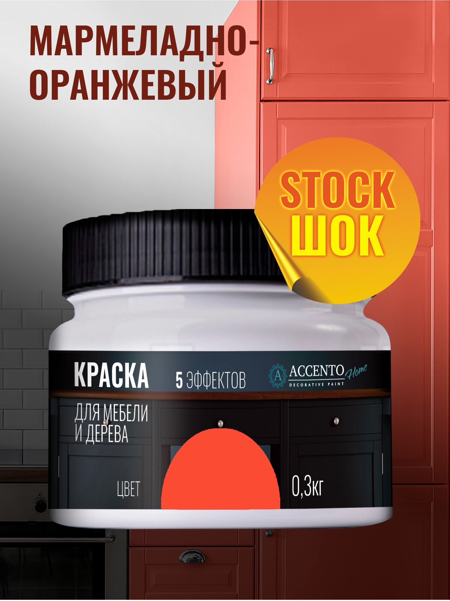 Купить Краска для мебели и дерева акриловая полуматовая, для творчества и декора, цвет Мармеладно-оранжевый, 300г