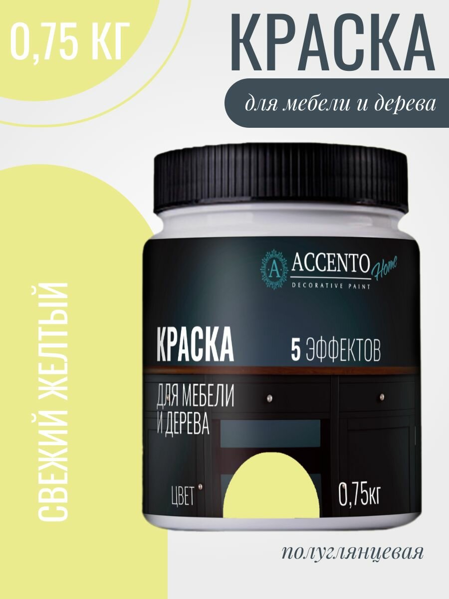 Купить Краска для мебели и дерева акриловая полуглянцевая, для творчества и декора, цвет Свежий желтый, 750г
