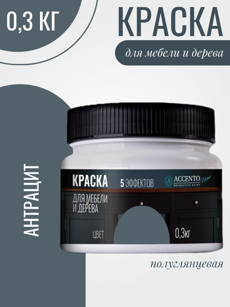 Купить Краска для мебели и дерева акриловая полуглянцевая, для творчества и декора, цвет Антрацит, 300г