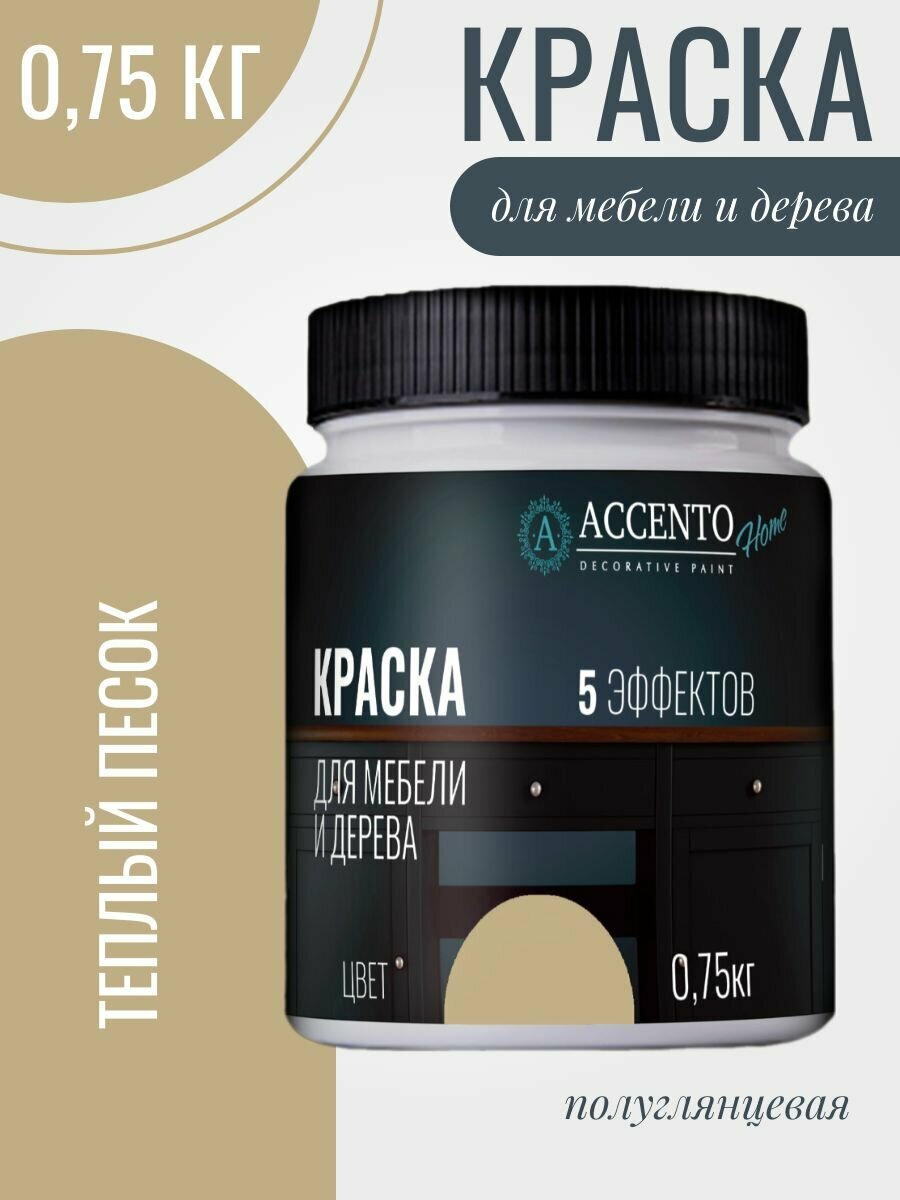 Краска для мебели и дерева акриловая полуматовая, для творчества и декора, цвет Речной песок 750г