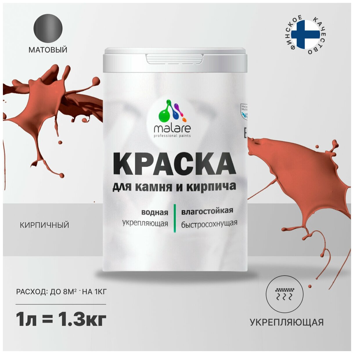 Купить Краска Malare для камня и кирпича, по бетону и штукатурке, для минеральных поверхностей, водная быстросохнущая, без запаха, матовая, кирпичный, (1л - 1,3кг).