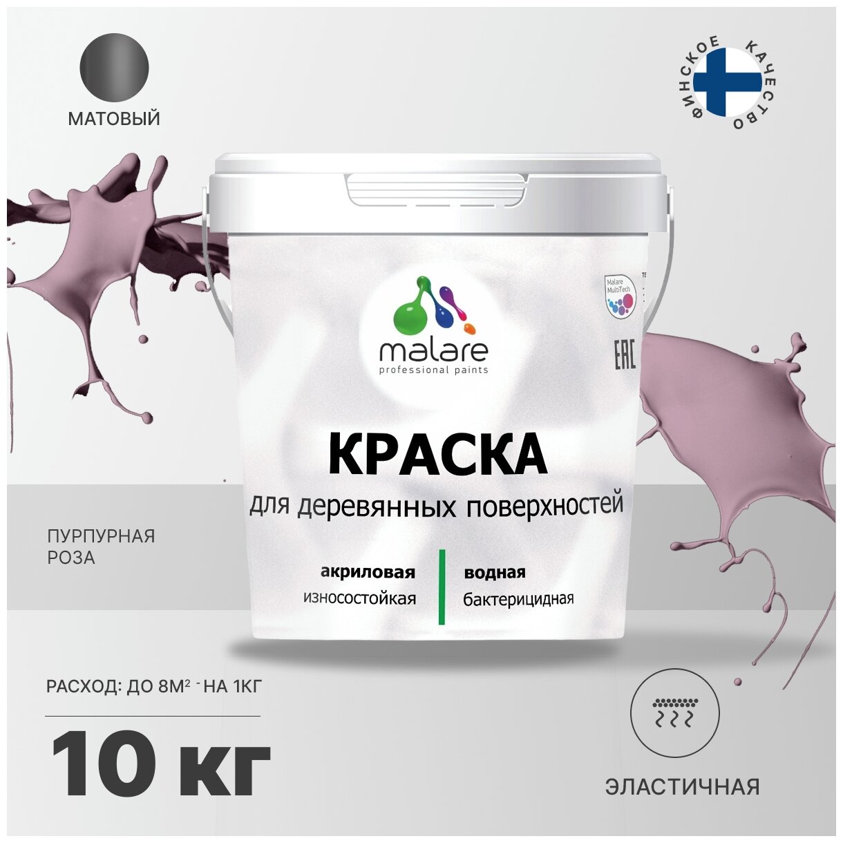 Акриловая краска для дерева Malare Elastic для наружных и внутренних работ, быстросохнущая без запаха, матовая, розовый пион, 1 кг