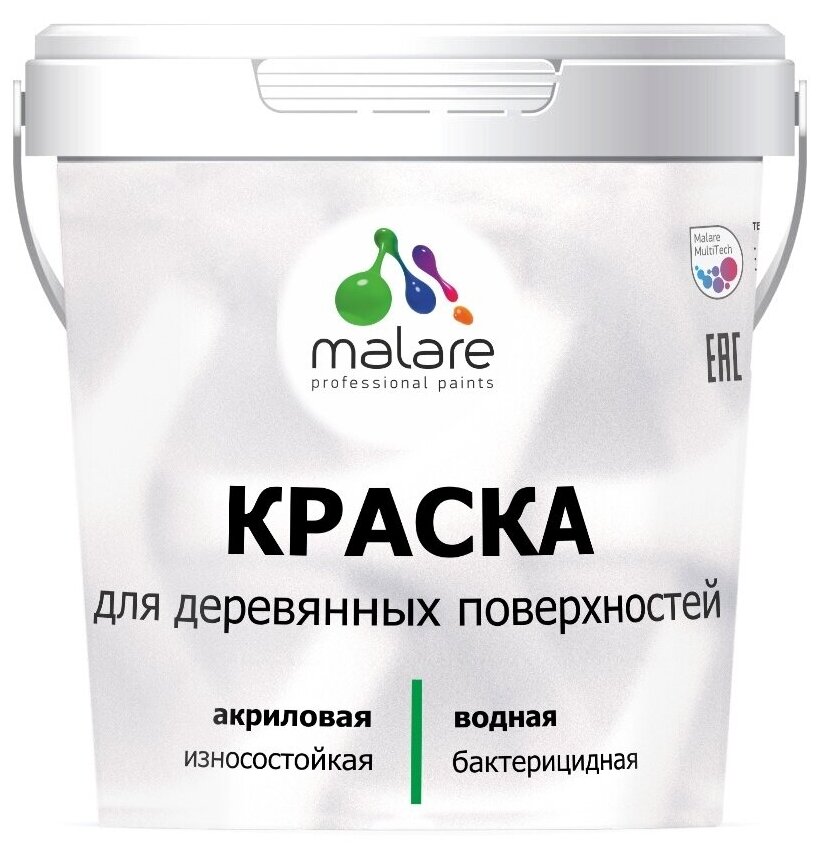 Акриловая краска для вагонки Malare для дерева, для фасадов и интерьера с антисептическим эффектом, быстросохнущая, без запаха, матовая, белый, 2 кг