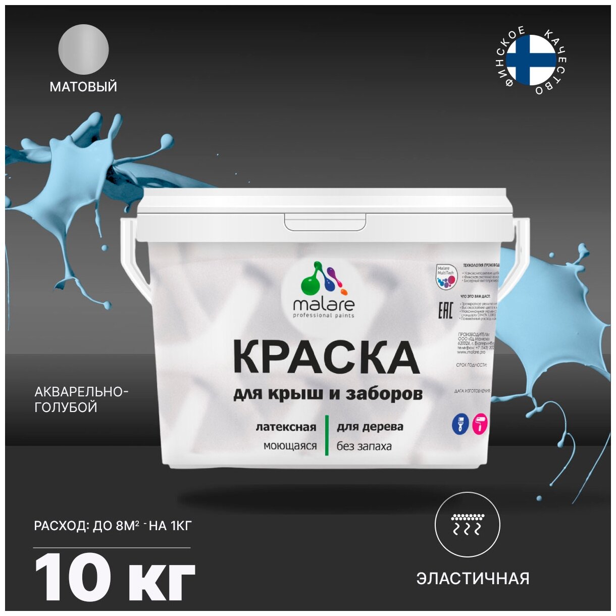 Купить Краска Malare для деревянного забора, для крыши из шифера, для деревянных и минеральных поверхностей, с антисептическим эффектом, быстросохнущая, без запаха, матовая, акварельно-голубой, 10 кг.