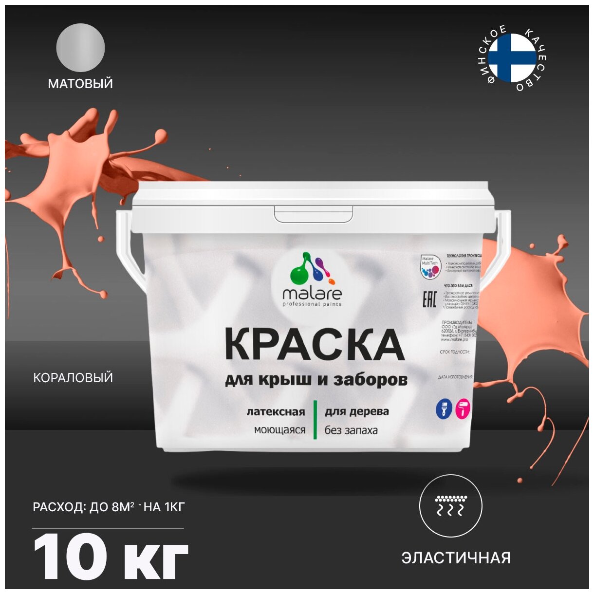 Купить Краска Malare для деревянного забора, для крыши из шифера, для деревянных и минеральных поверхностей, с антисептическим эффектом, быстросохнущая, без запаха, матовая, коралловый , 10 кг.