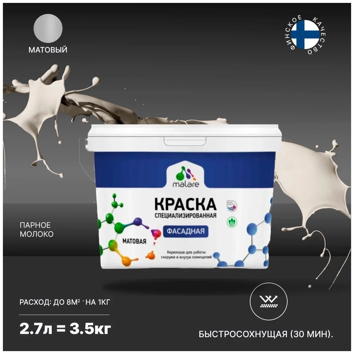 Купить Краска Malare Professional фасадная по дереву, бетону и штукатурке, для камня и кирпича, быстросохнущая без запаха матовая, парное молоко, (2.7л - 3.5кг).