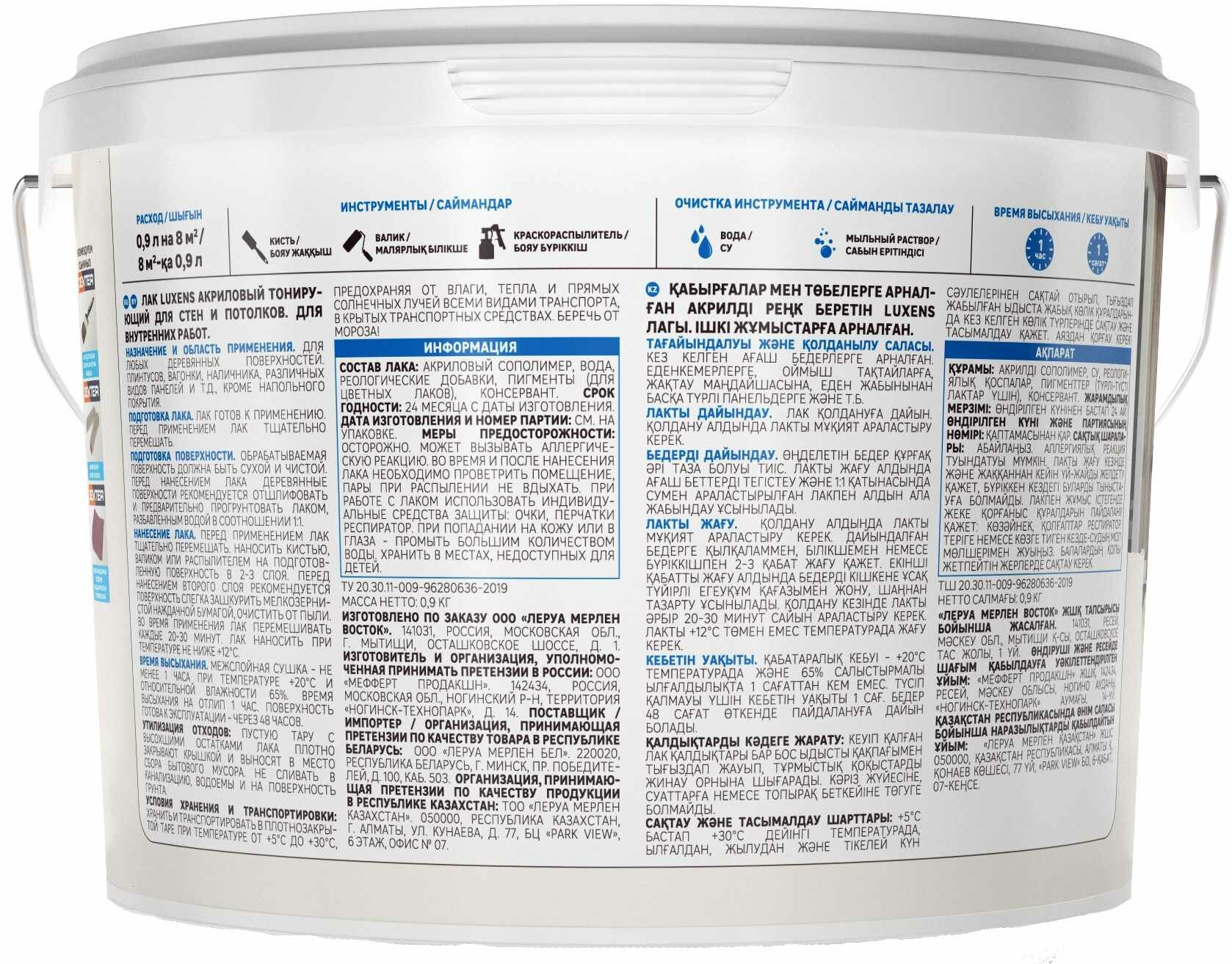 Лак Luxens мебельный бесцветный, полуглянцевый, 0.99 кг, 0.9 л