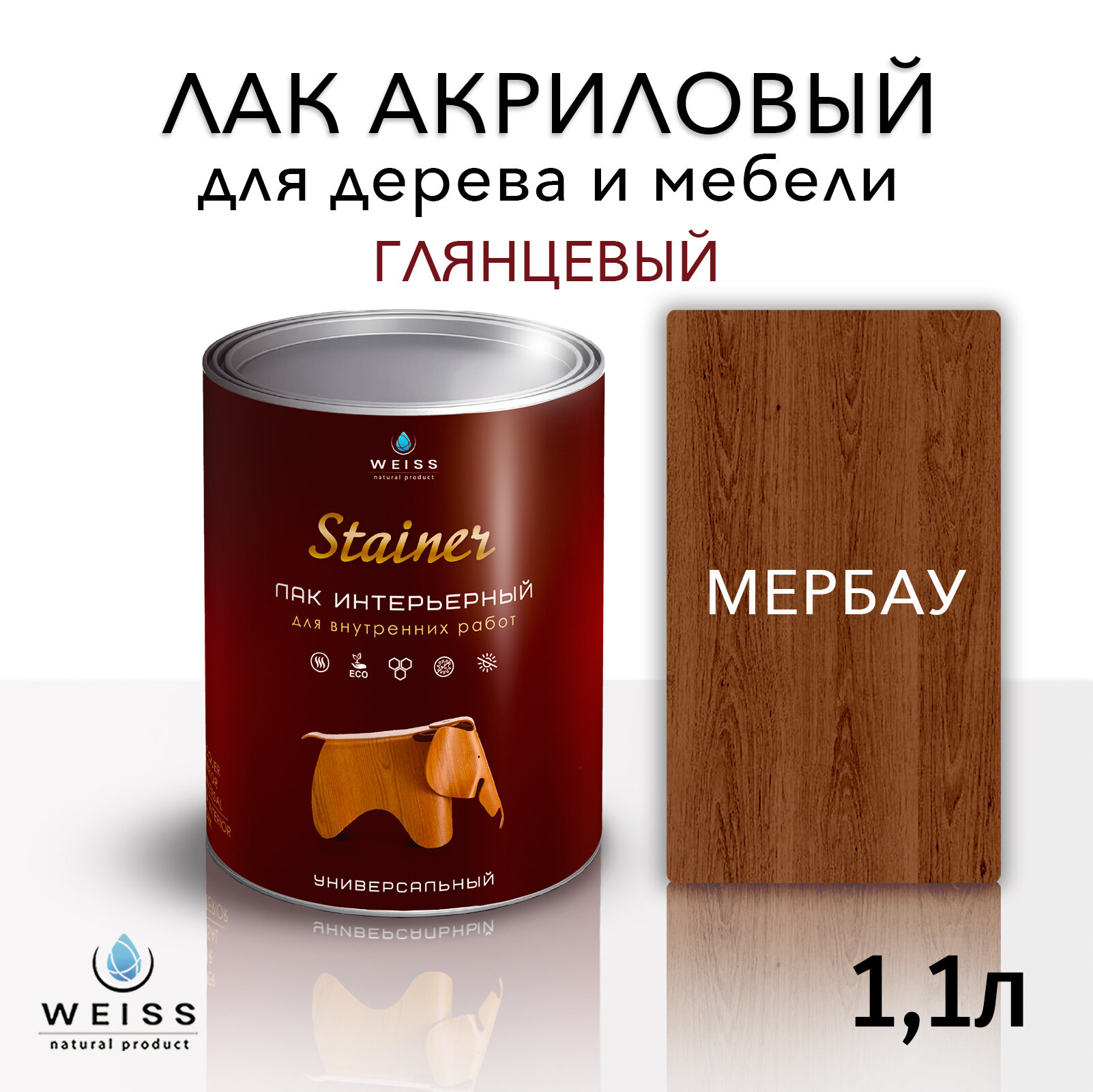 Лак для дерева акриловый венге, глянцевый, Weiss natural product, без запаха, самовыравнивающийся, 1.1л