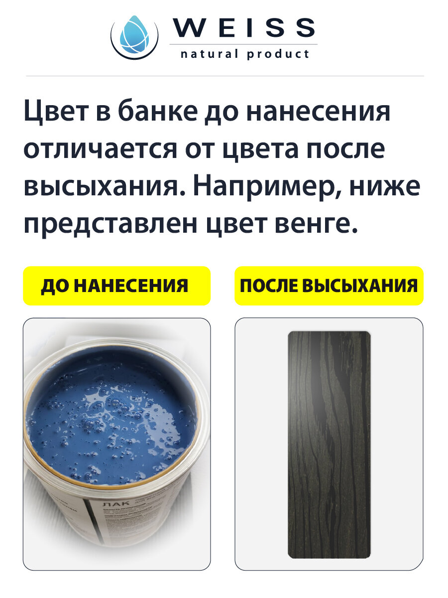 Лак для дерева акриловый венге, глянцевый, Weiss natural product, без запаха, самовыравнивающийся, 1.1л
