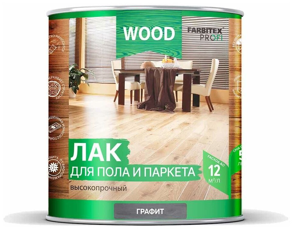 Лак для пола и паркета высокопрочный FARBITEX PROFI WOOD (Артикул: 4300009376; Фасовка = 0,8 л; Цвет = Графит)