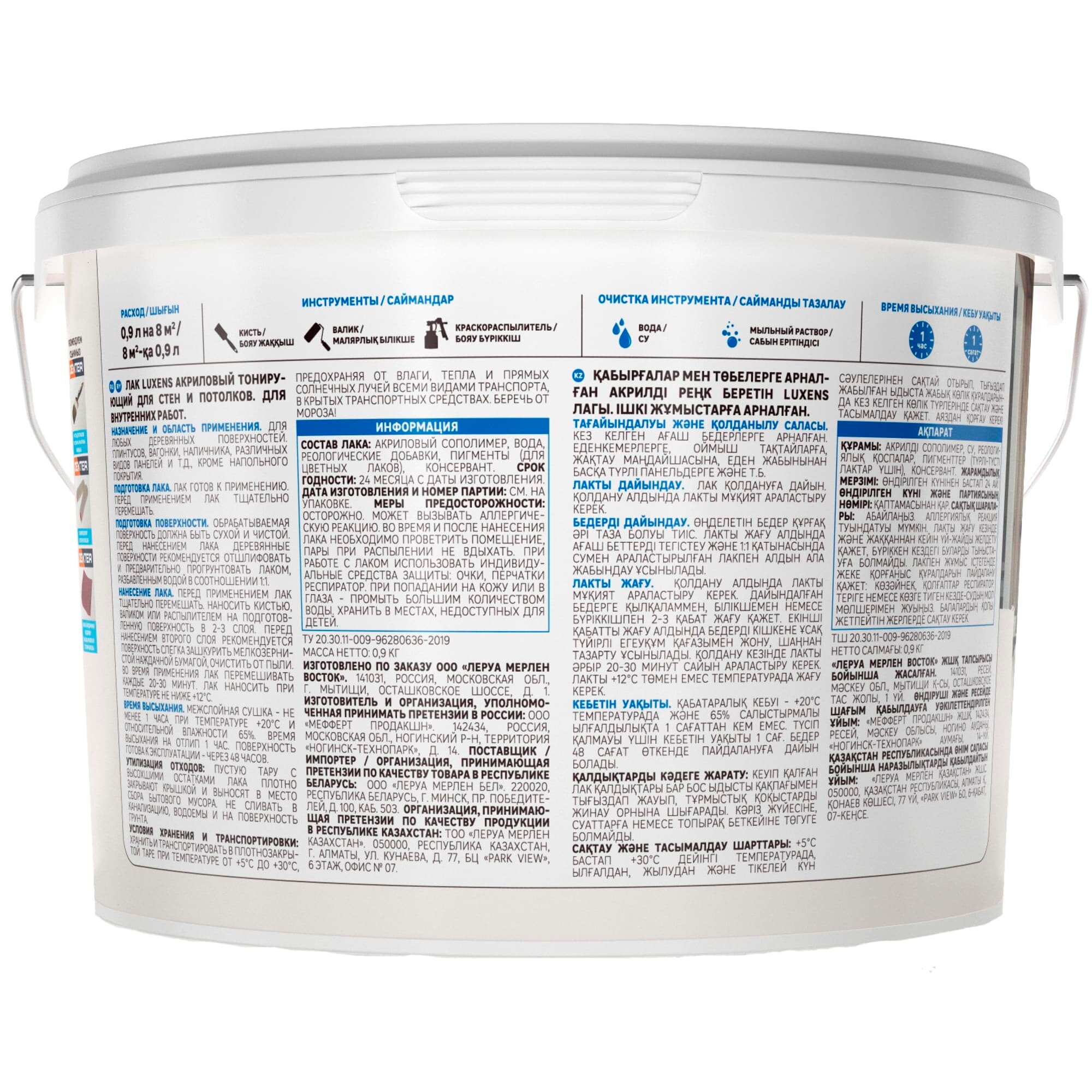 Лак Luxens для стен и потолков бесцветный, полуглянцевая, 0.9 л