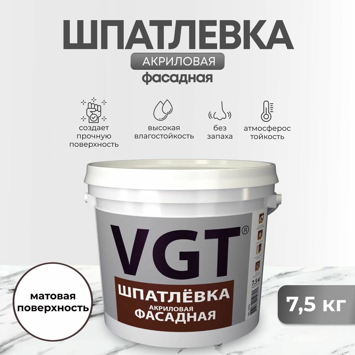 Шпатлевка Фасадная VGT 7.5кг до 7 мм Акриловая, Водостойкая, Малоусадочная / ВГТ Шпатлевка.