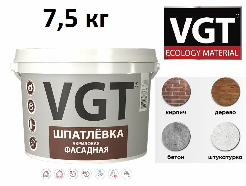 Шпатлевка фасадная VGT, акриловая, 7,5 кг интересное: