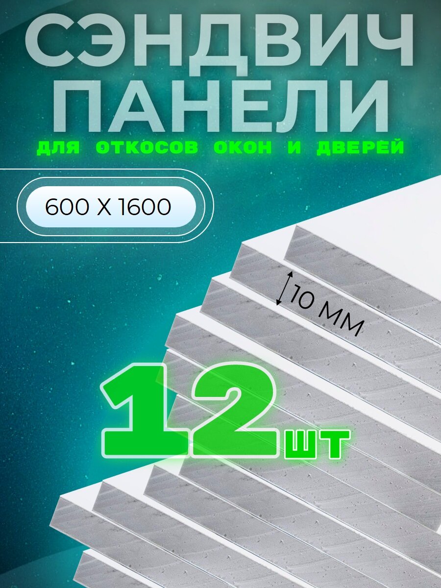 Откос оконный (дверной) внутренний /сэндвич 10 мм/ 1600х500 мм (12 штук в комплекте)