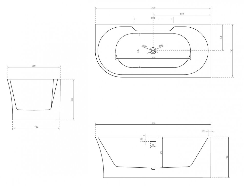 Акриловая ванна 170x78 см R Abber AB9335-1.7 R