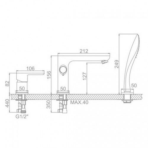 Смеситель на борт ванны врезной из 3 предметов Ledeme, /8/; L1153