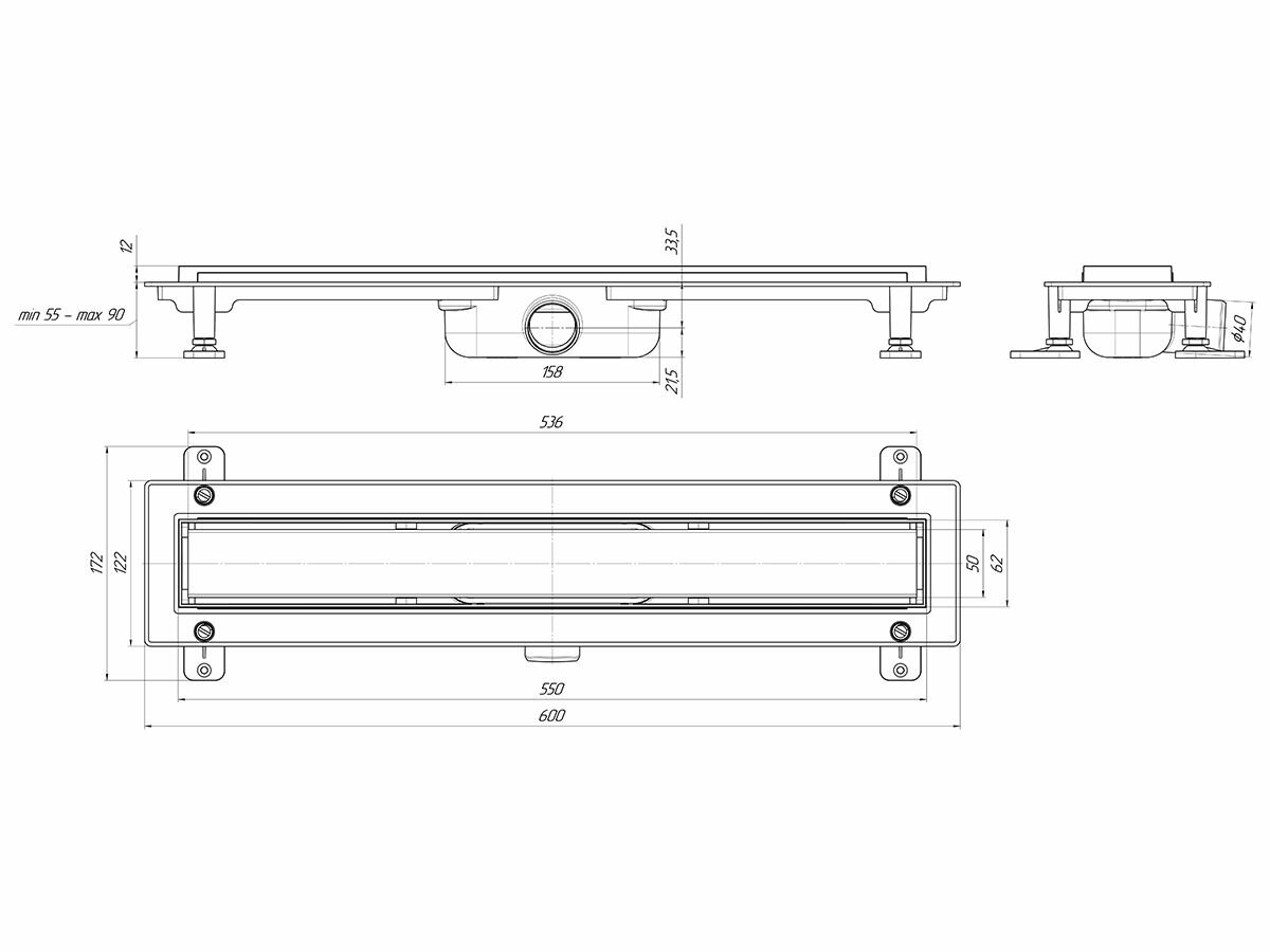 Трап линейный пласт. Сухой 550*62 вып.40мм, стальн. нерж решетка матовая "Штиль" АНИ пласт TLQ1155M интересное: