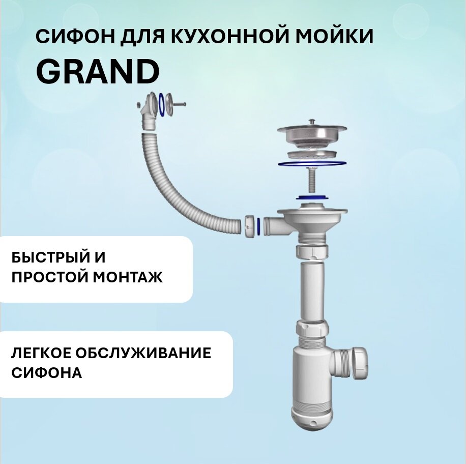 Сифон для кухни Санпласт GRAND 3*1/2 с круглым переливом и винтом эконом интересное: