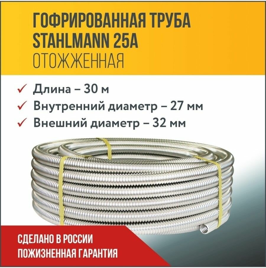 Труба гофрированная водопроводная из нержавеющей стали Stahlmann 32А, отожженная, 20м.