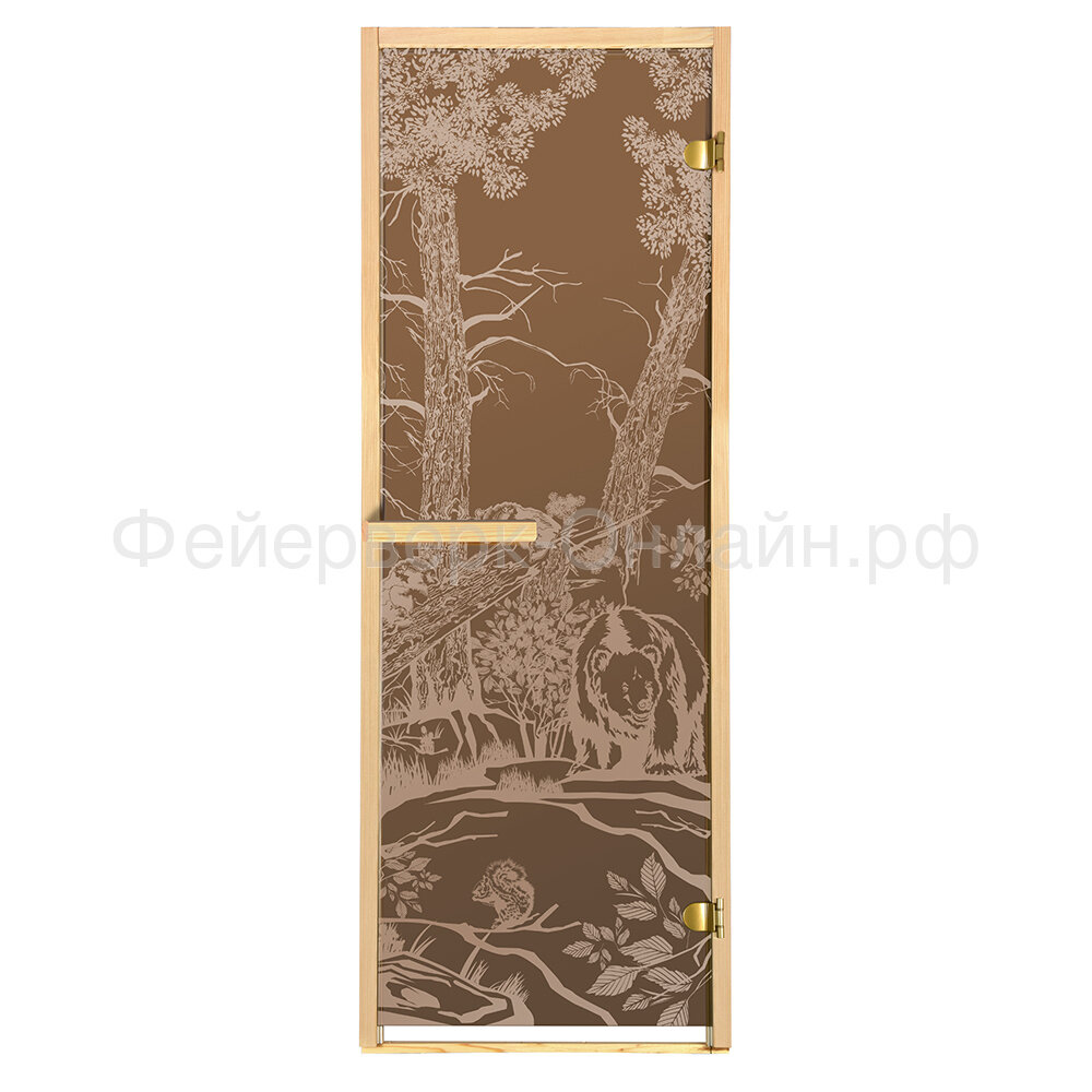 Купить Дверь Банные Штучки Мишки, из стекла, короб из хвойных пород, бронза, 1,9х0,7 м