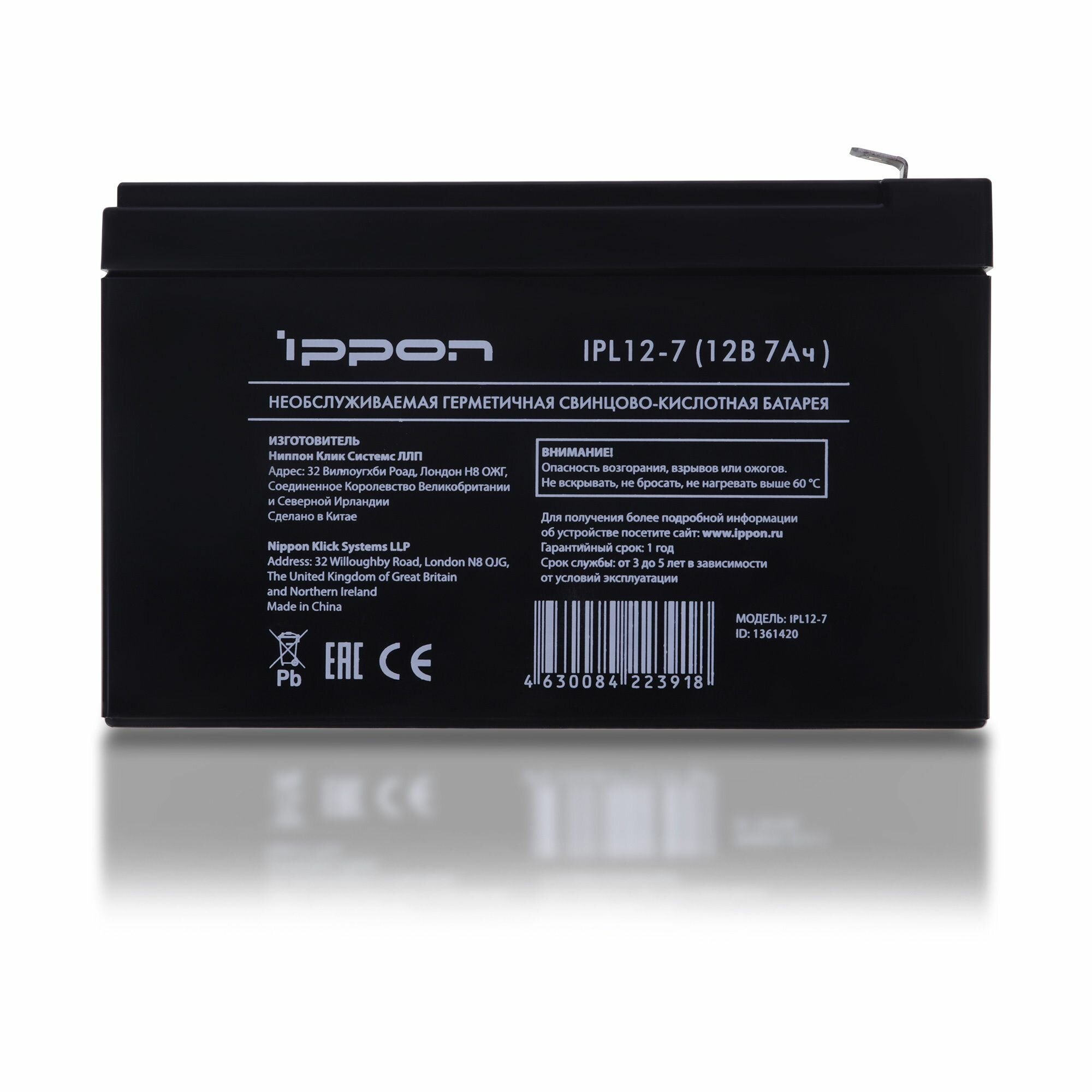 Аккумуляторная батарея Ippon IPL12-7, кислотно-свинцовая, 12 В, черный