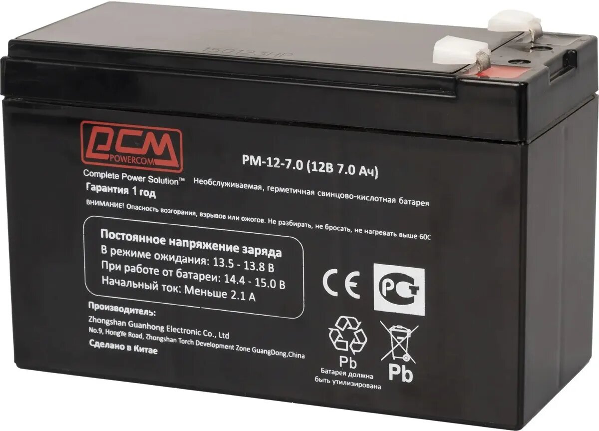 Аккумуляторная батарея POWERCOM PM-12-7.0 для ИБП 12В, 7.0Ач