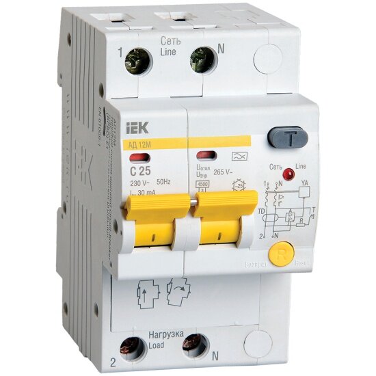 Дифференциальный автоматический выключатель АД12М 2Р С25 30мА IEK