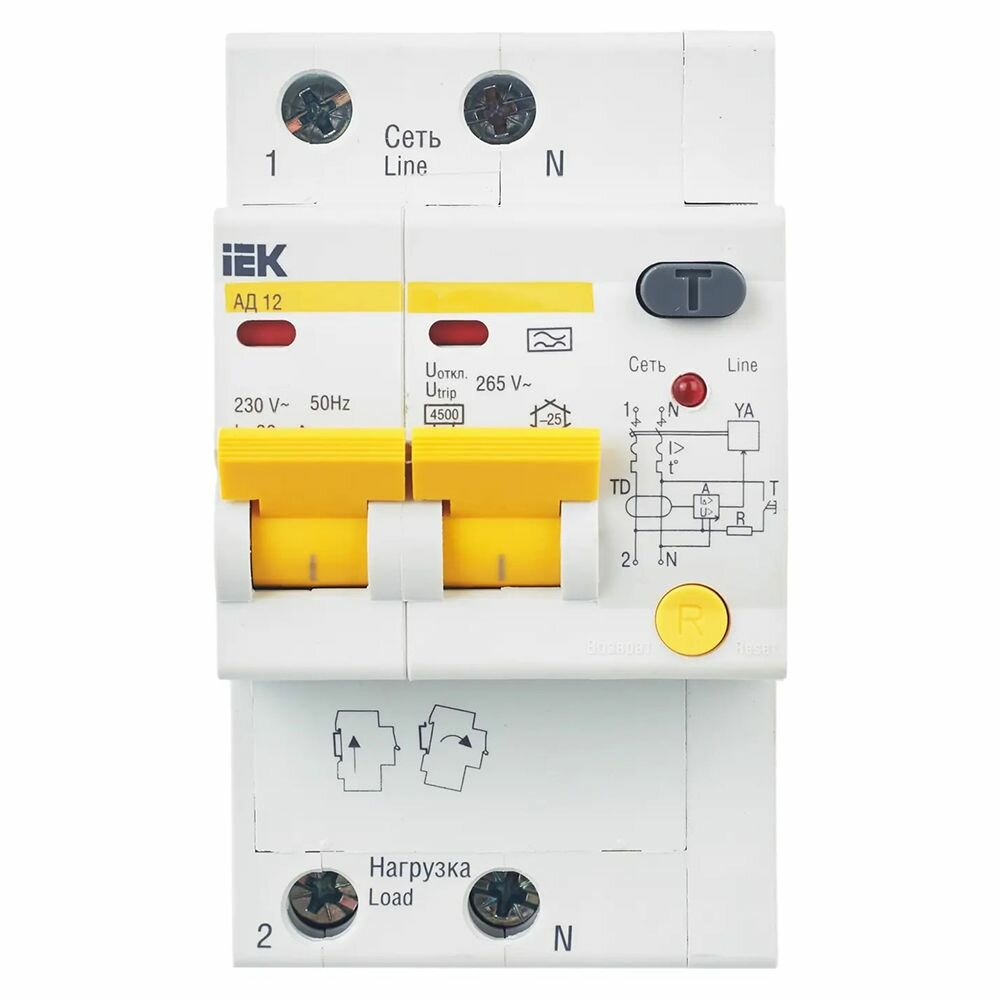 IEK дифф. автоматический выключатель АД12М 2P С25А 30мА ток утечки A, AC MAD12-2-025-C-030