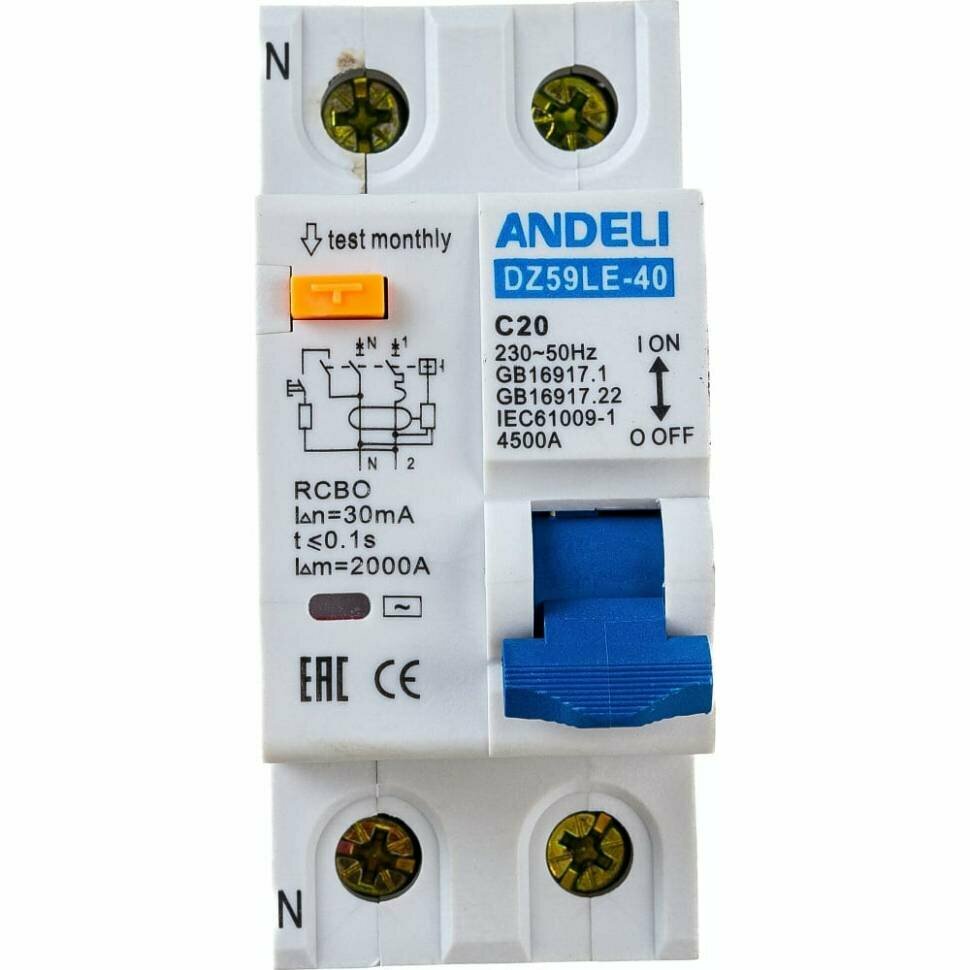 Дифференциальный автоматический выключатель Andeli, DZ59LE-40 (1P+N), 20 А, 30 мА, 4,5 кА