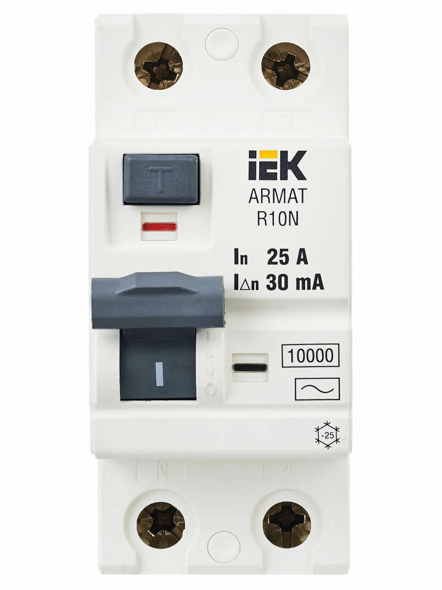 Купить Выключатель дифференциального тока (УЗО) 2п 25А 30мА тип AC ВДТ R10N ARMAT IEK AR-R10N-2-025C030