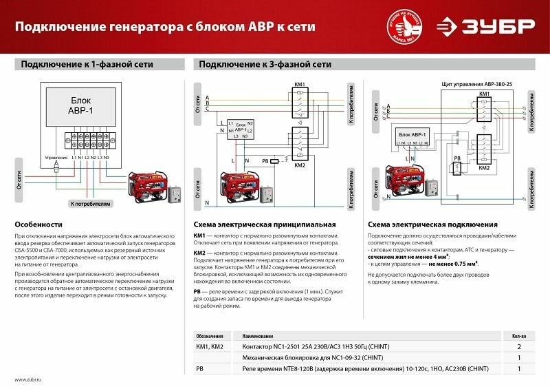 Бензиновый генератор Зубр СБ-5500Е, 220 В, 5.5кВт