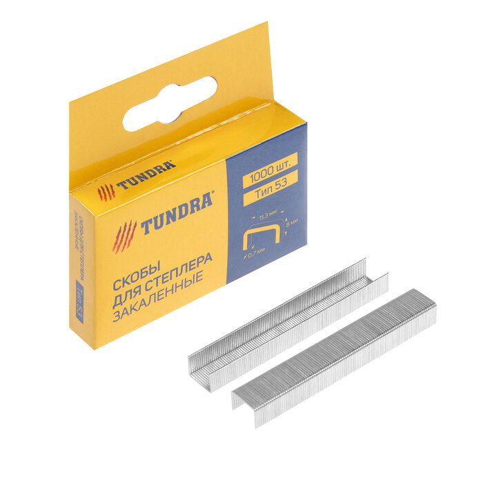 Купить Тундра Скобы для степлера TUNDRA закалённые, тип 53, (11.3x0.7 мм), 8 мм (1000 шт.)