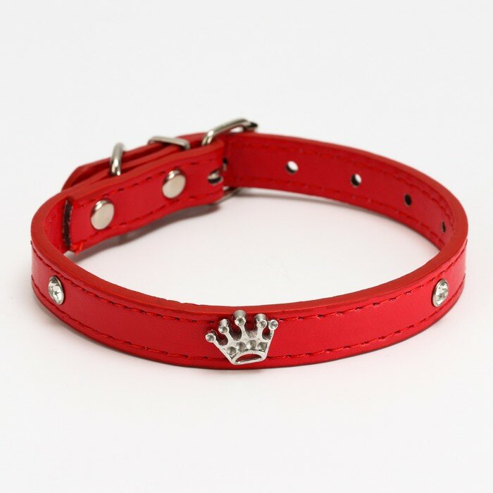 Купить Ошейник с металлическим декором и со стразами "Корона", 36 х 1,4 см, красный