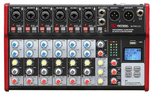 VOLTA INTRO 61 Профессиональный компактный микшерный пульт. 6 мик/линейных входов + 1 стерео вход, встроенный медиа плеер, ревербератор интересное: