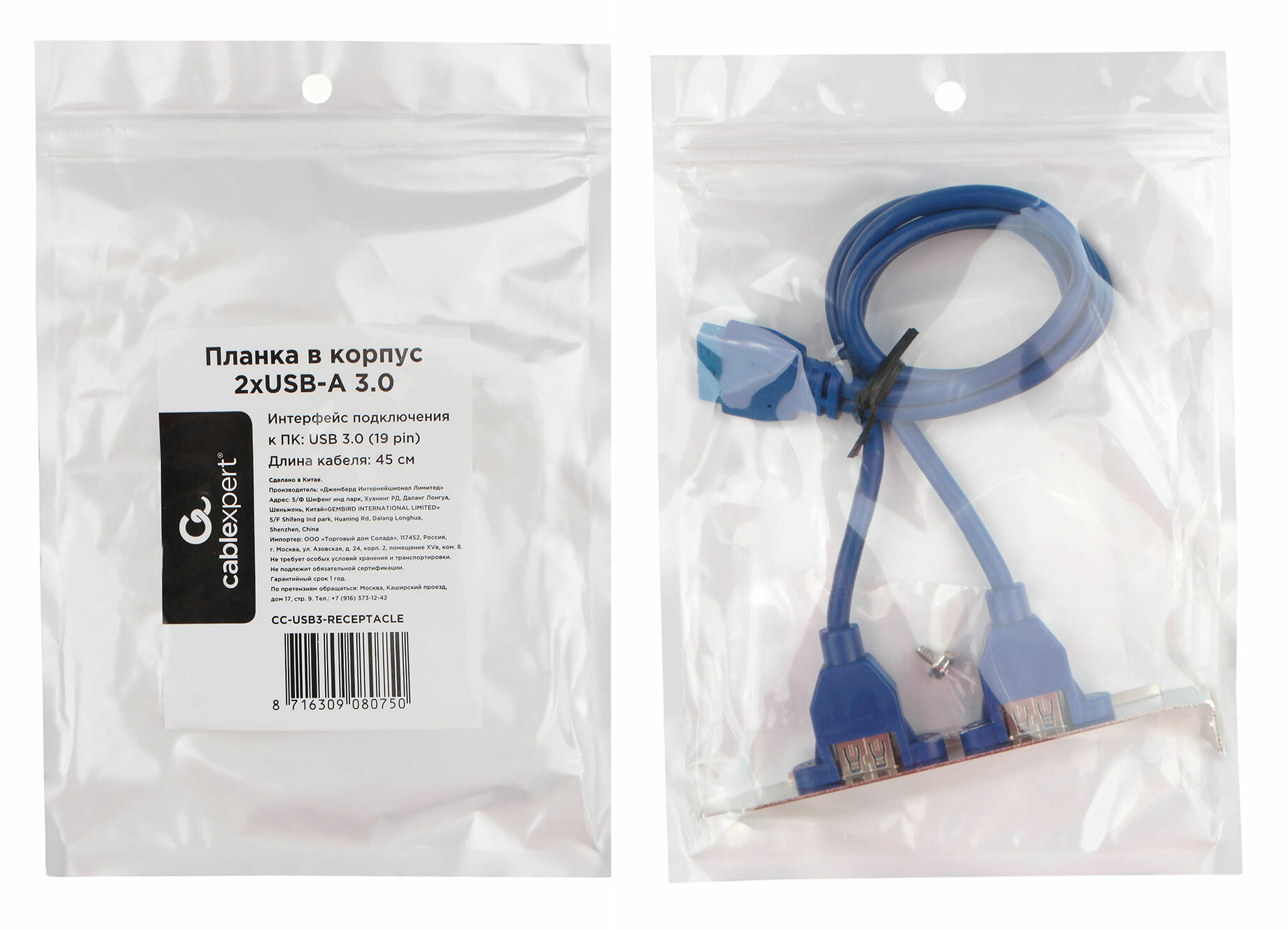 Планка CC-USB3-RECEPTACLE Gembird в сист блок 2xUSB 3.0/20pin мат.платы (080750)