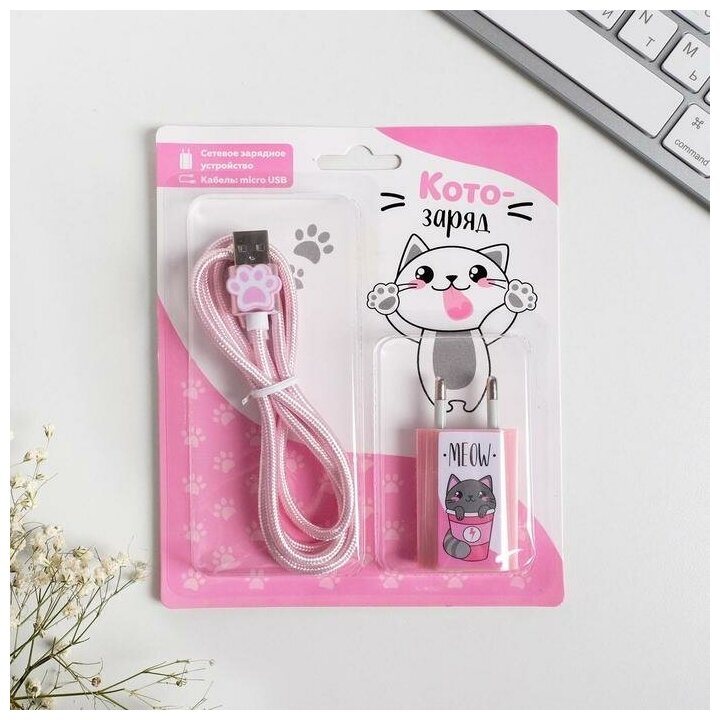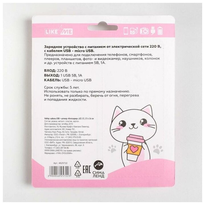 Купить Like me Набор кабель USB - micro USB и штекер "Котозаряд", 1 м