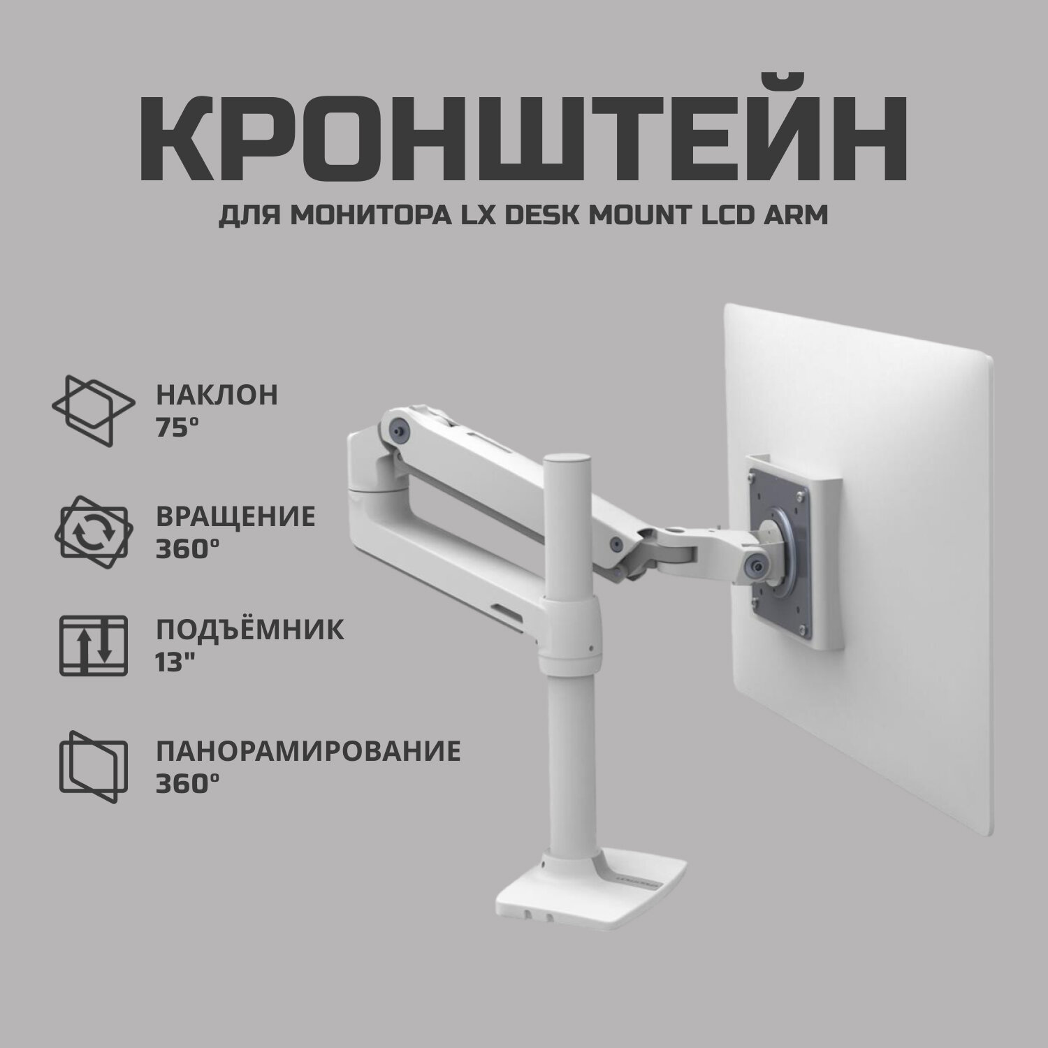 Ergotron LX Desk Mount LCD Arm, Tall Pole 45-537-216 (белый) настольный кронштейн интересное: