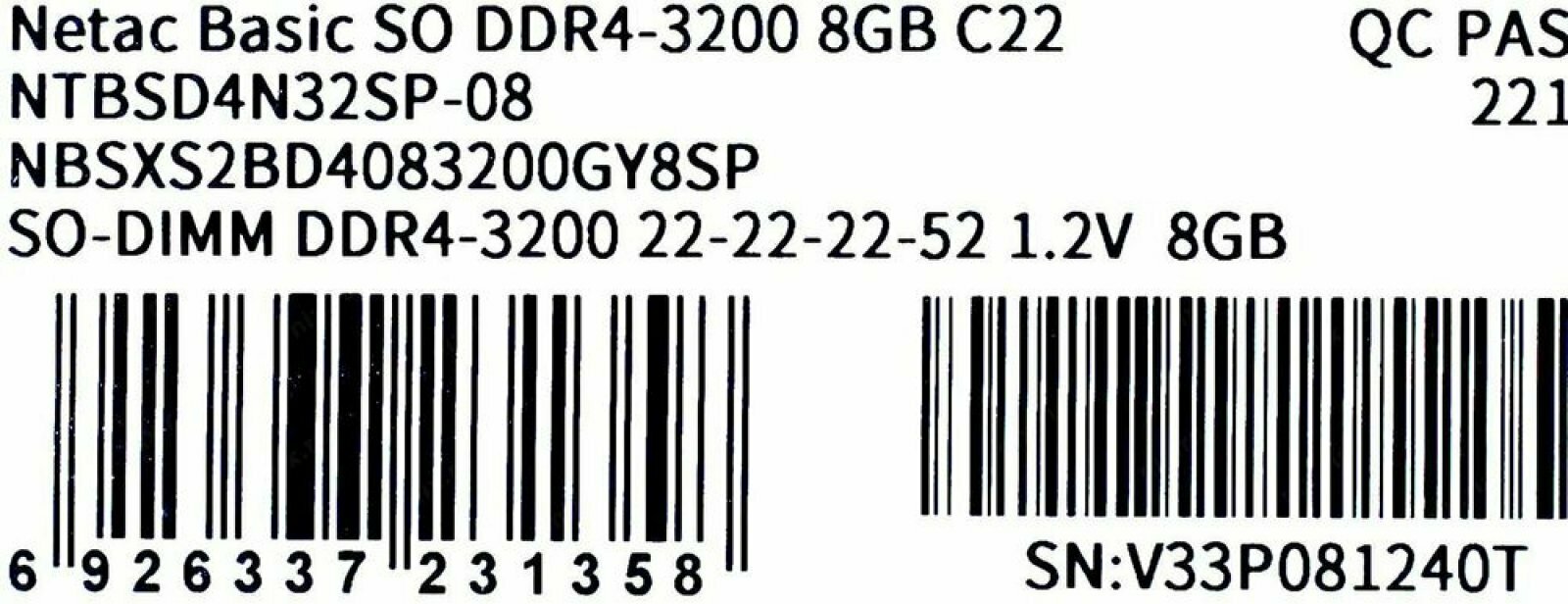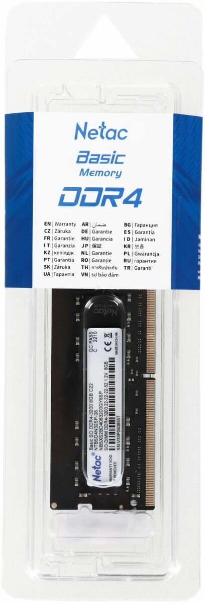 Оперативная память NETAC Basic NTBSD4N32SP-08 DDR4 - 8ГБ 3200, SO-DIMM, Ret